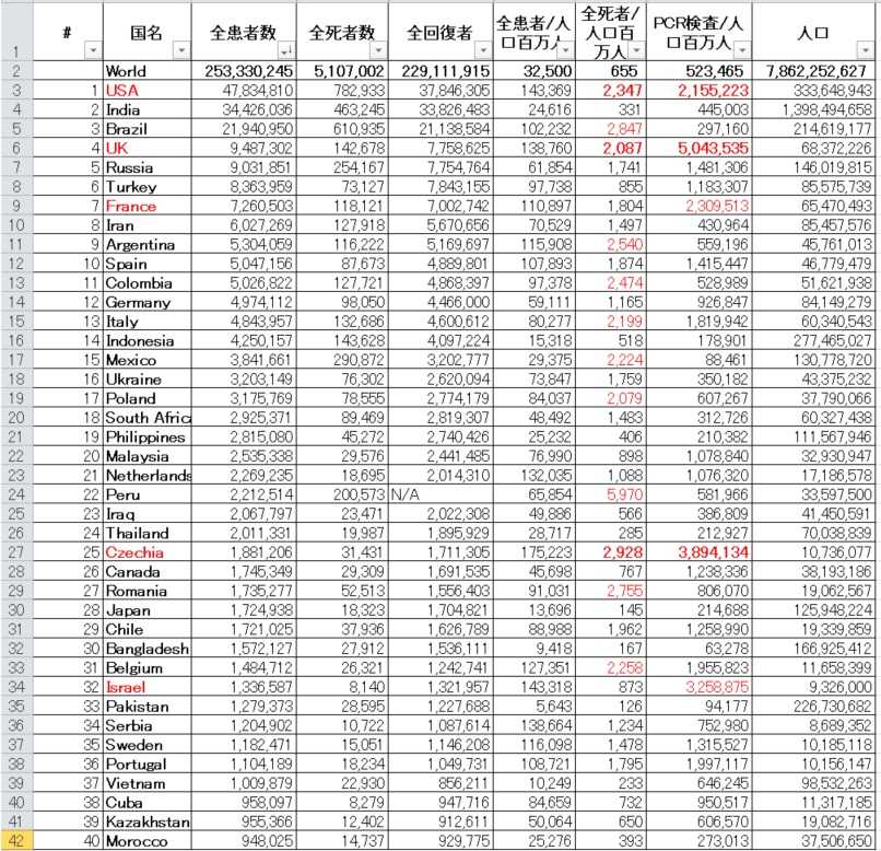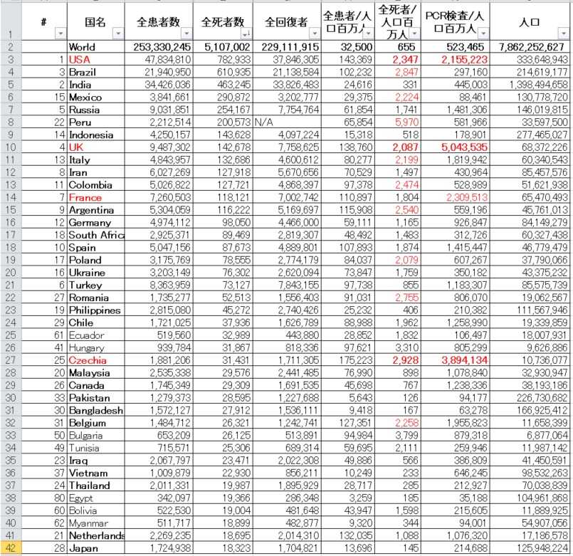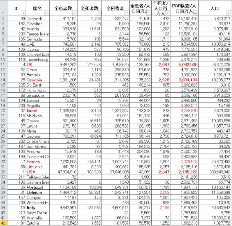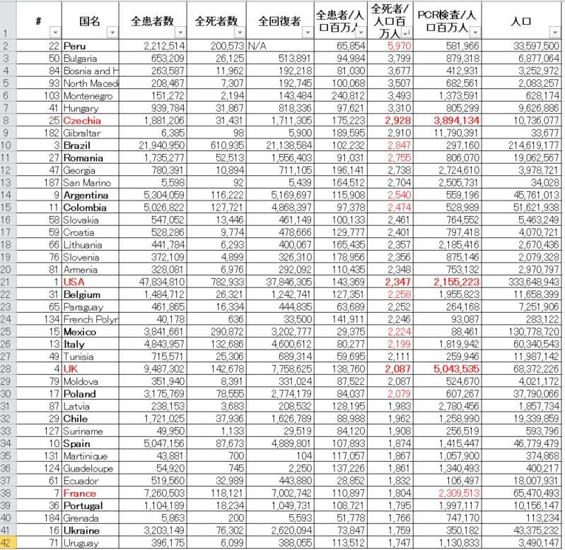 (上表では「日本」は人口百万人当たり14日間の死者は