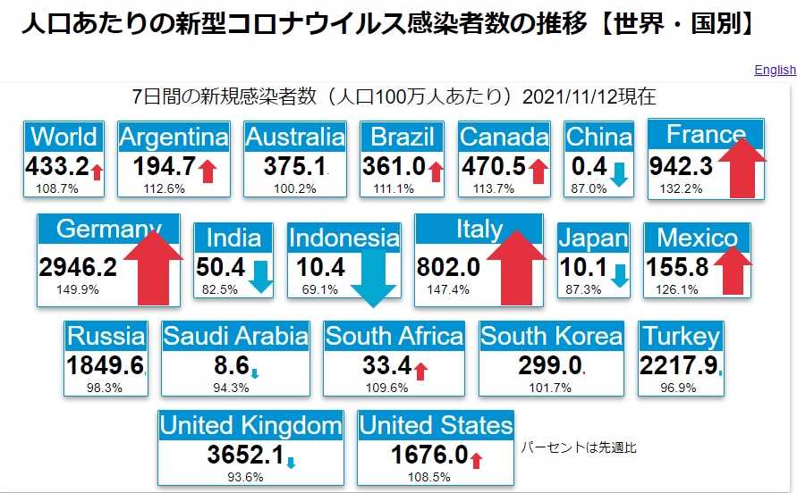 8.世界の主要国の「7日間の人口百万人当たり新規感染者」
