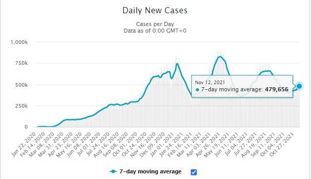 6.全世界の直近7日間の新規感染者の平均数グラフ