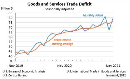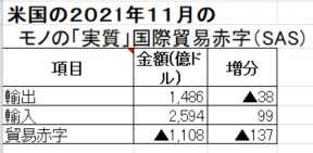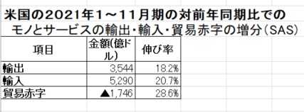 4.米国の2021年1~11月のモノとサービスの貿易赤字