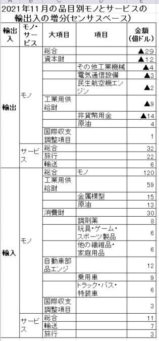 5.米国2021年11月のモノとサービスの主要品目別分析