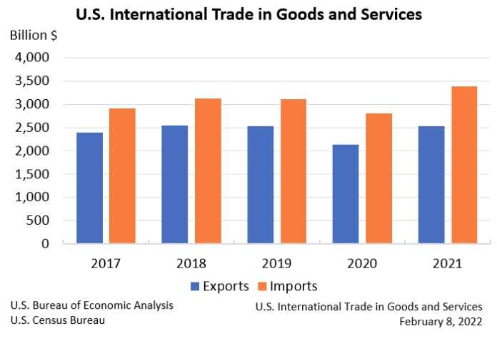​​​​​1.米国のモノとサービスの貿易( ​輸出​ 輸入 )の推移