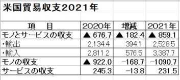 輸入4,913億ドル(+758億ドル)で、▲2,196億ドル