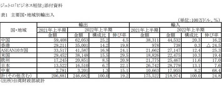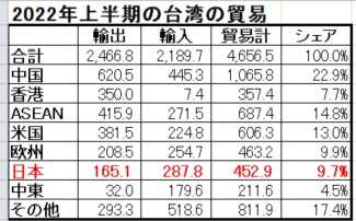 2. 2022年上半期の日本の貿易の中の「台湾の位置」