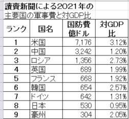 から国防費は8位にあるが、