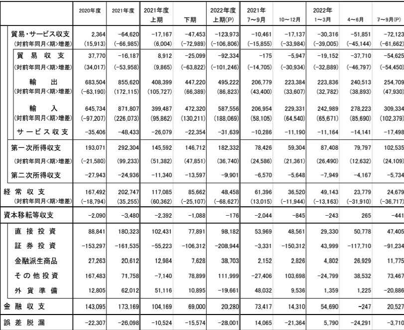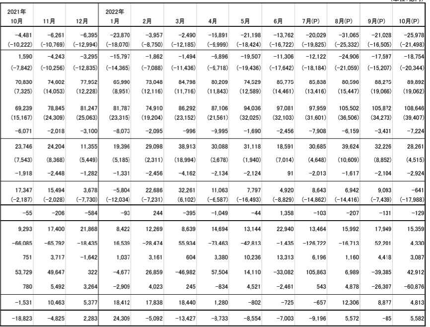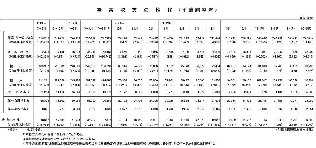 季調済みだと2022年10月に初めて▲6,093億円の赤字