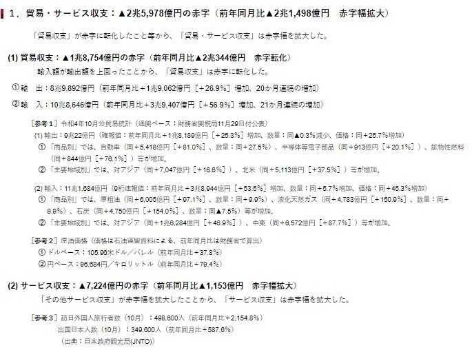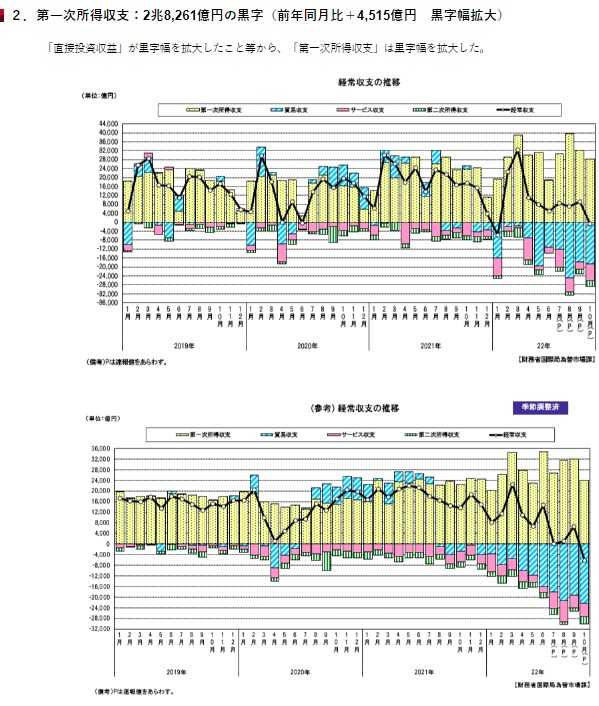 (2)月次~経常収支は2022年1月、2022年10月に赤字