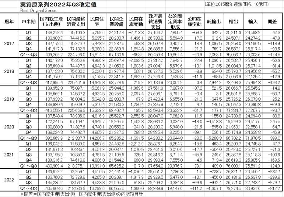 日本の実質GDPの2022年Q3の改定値は少し上振れ
