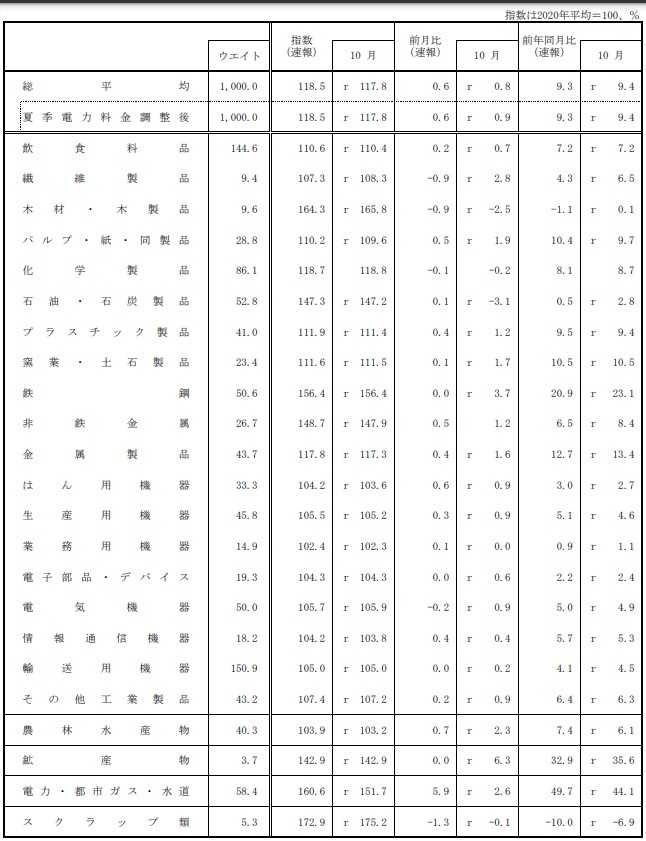 ​​​​​​​4.日本の「PPI総平均」は 10月が「117.8」 、11月が「118.5」
