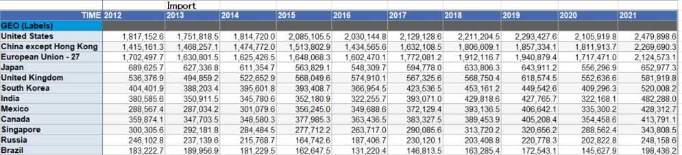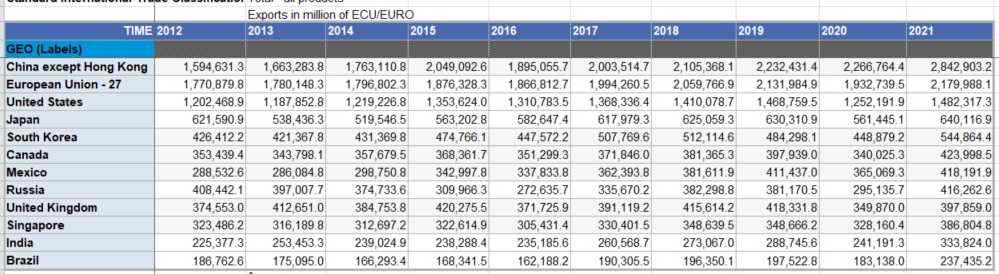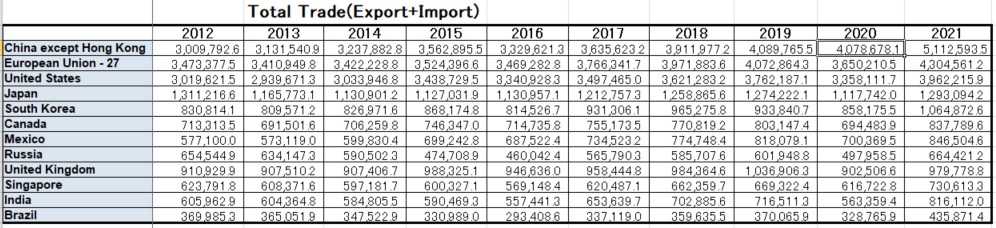 ​1.2021年のEU27の対世界の貿易(輸出+輸入)の