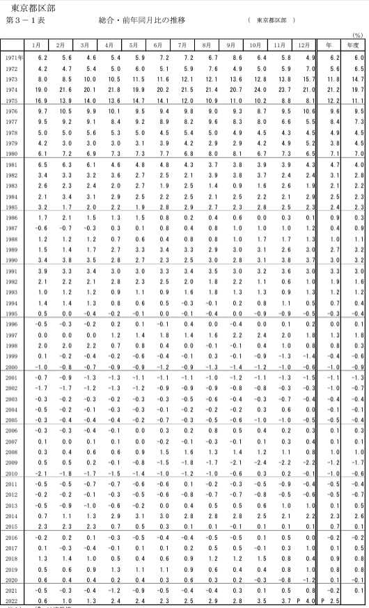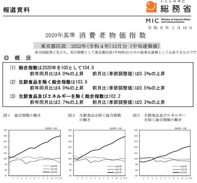 2022年12月中旬の東京都区部CPI(消費者物価指数)