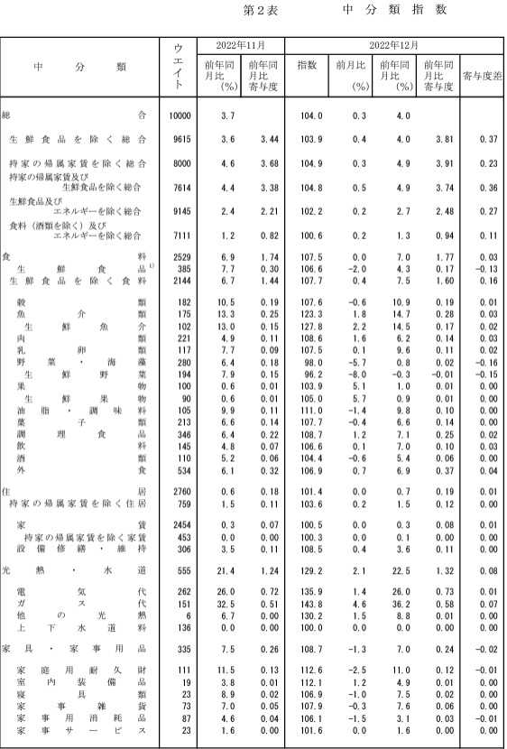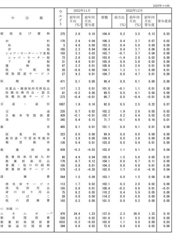 3.東京都区部中分類の2022年11月、12月のCPIの動向