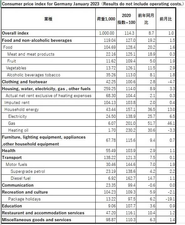 独の2023年1月のCPI動向