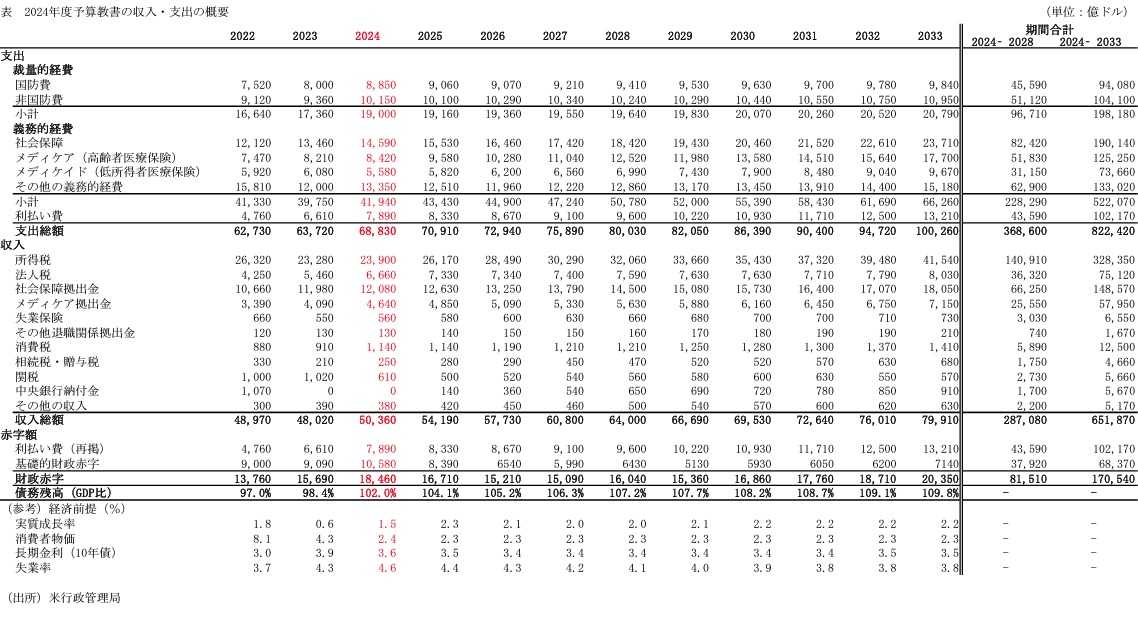 3.米国予算の歳入、支出、