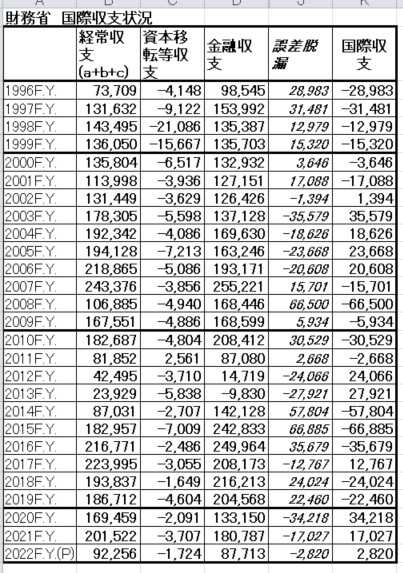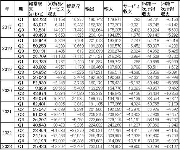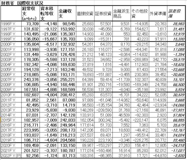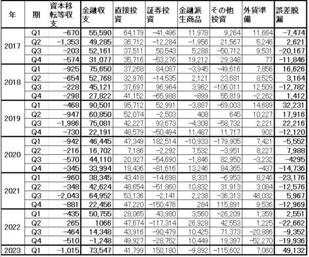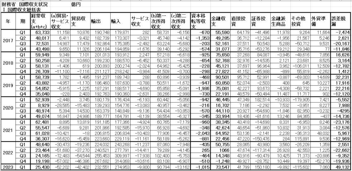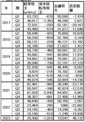 (4).四半期ベースの国際収支(= ー 誤差脱漏)