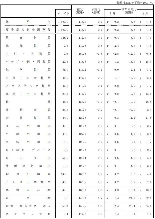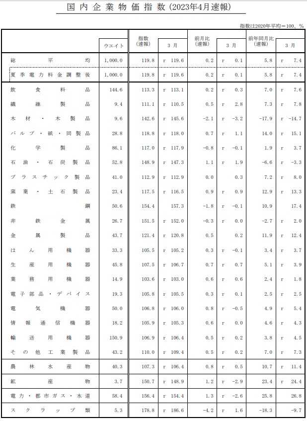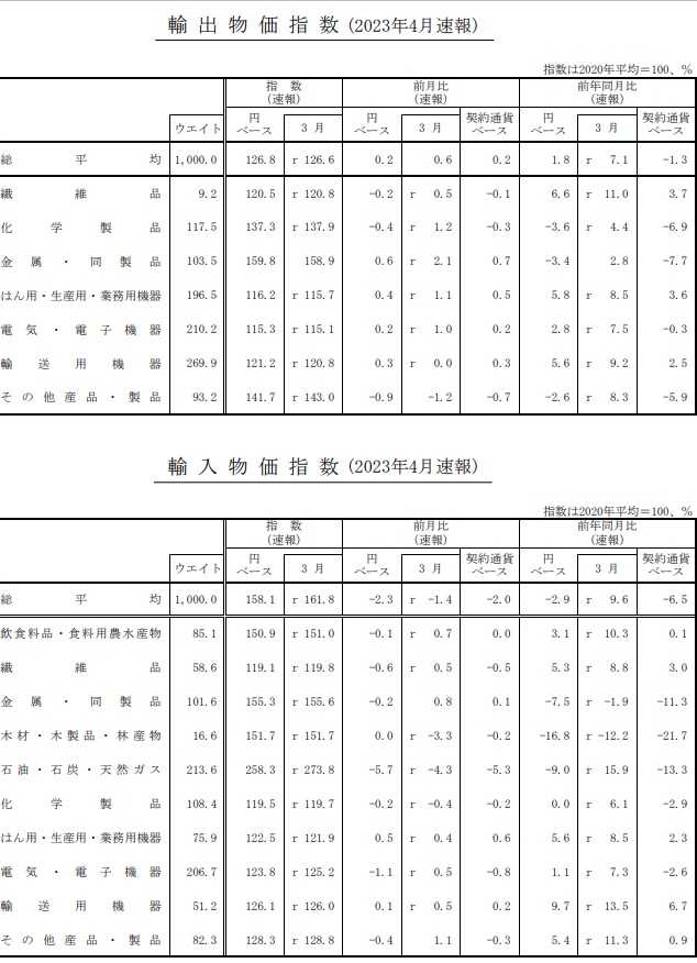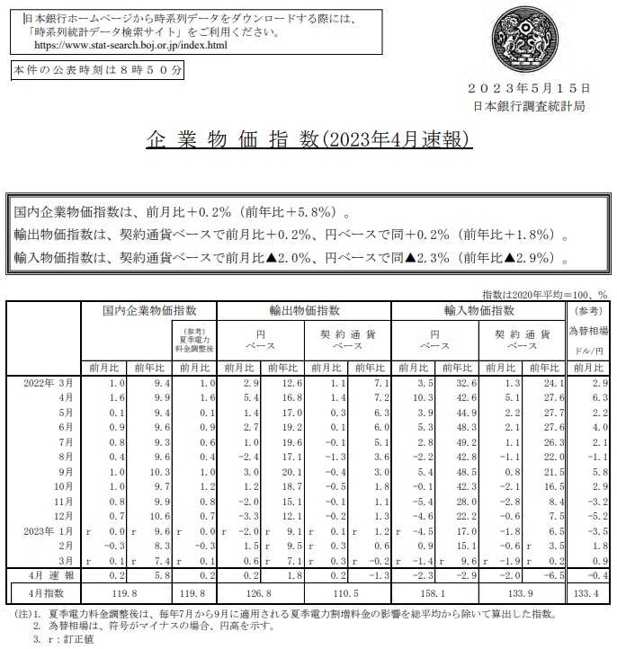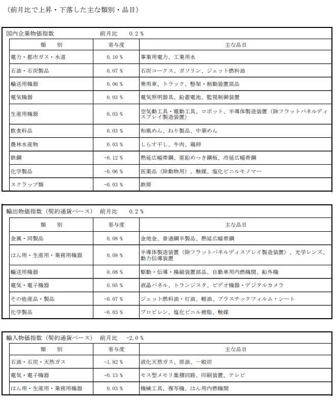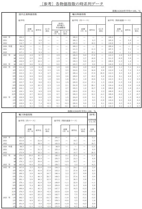 ​日本銀行の企業(国内・輸出・輸入)物価指数
