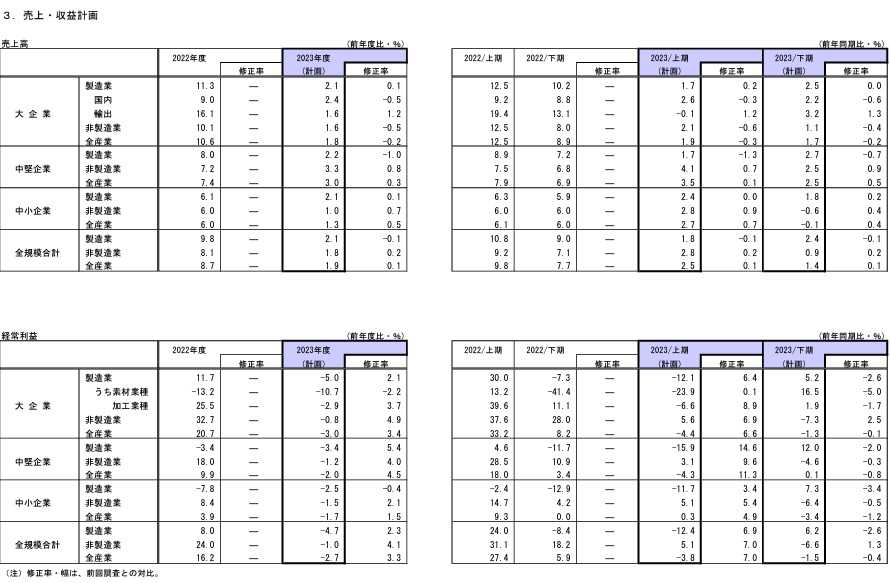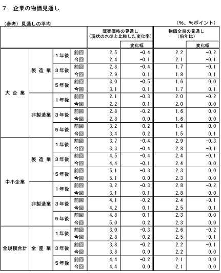 全規模全産業の1年後の見通し平均は前年比2.5%