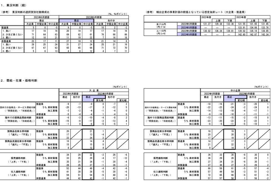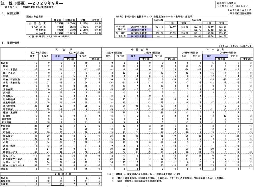 日本銀行が2日発表した9月の全国企業短期経済観測