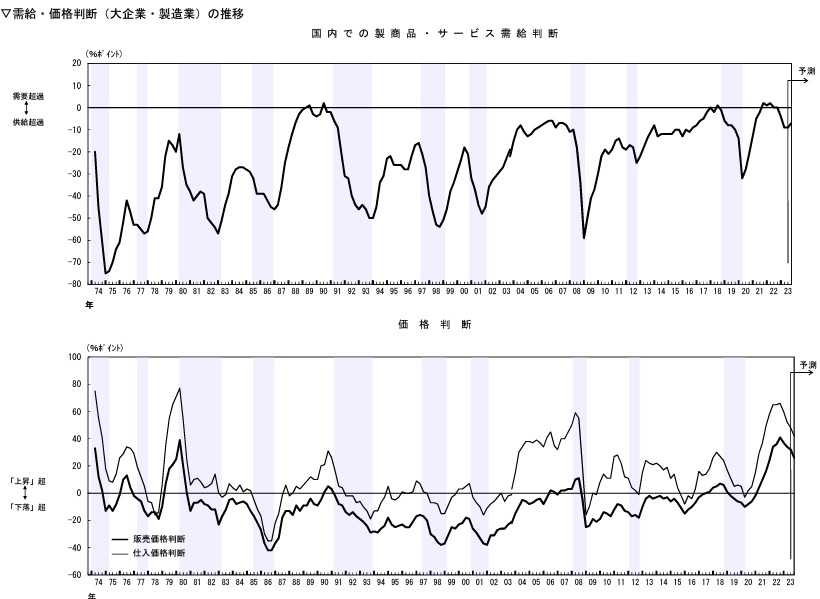 仕入れ価格判断DIも大企業製造業で4ポイント悪化
