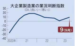 「大企業・製造業」の業況判断指数(DI)はプラス