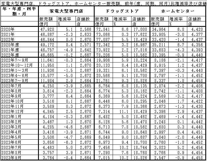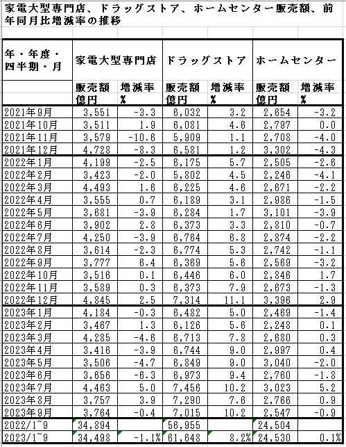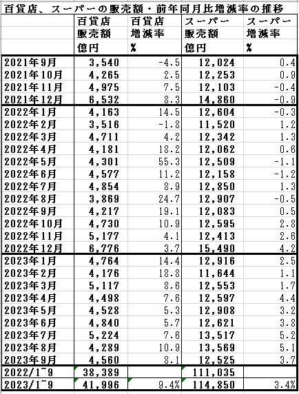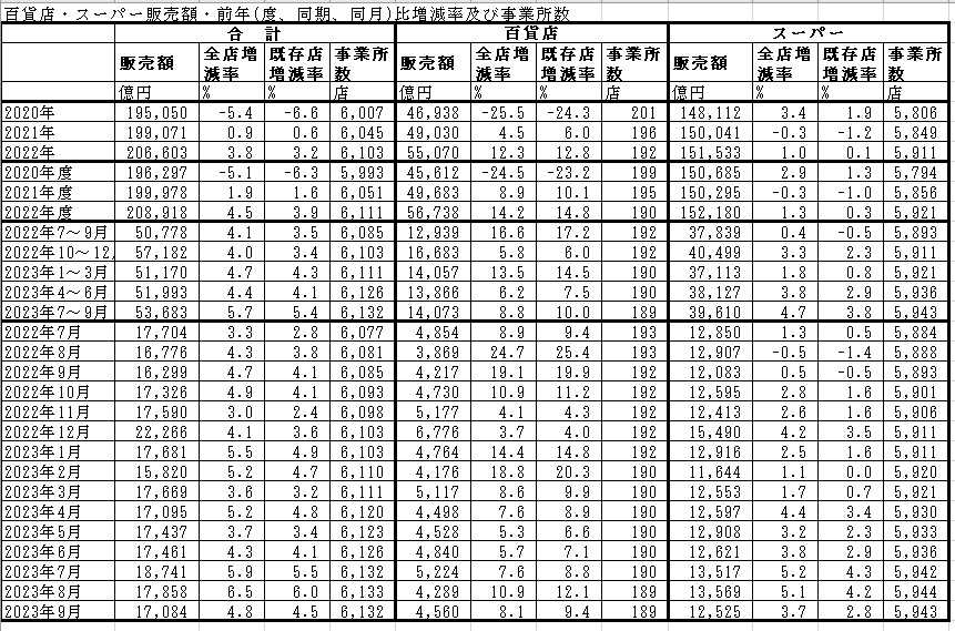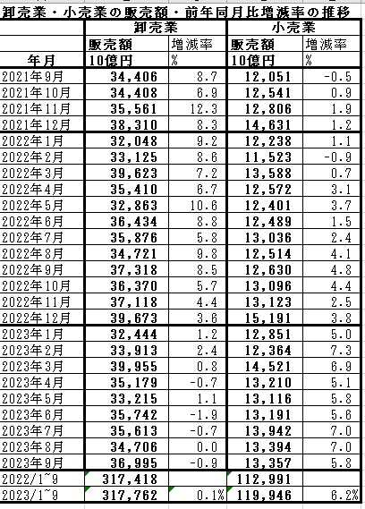 2023年9月の商業統計