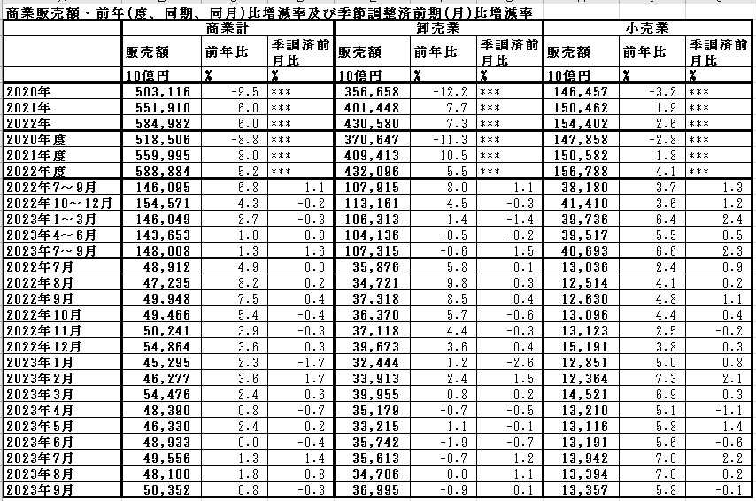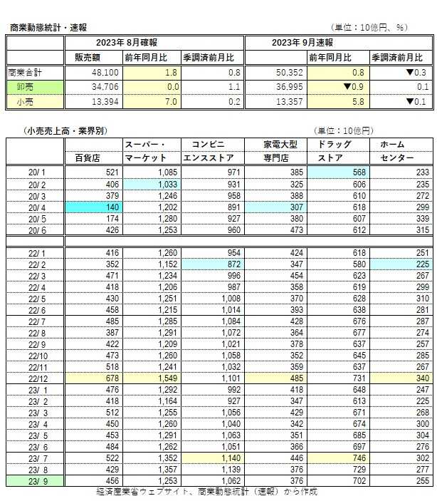 23年9月の商業動態統計・速報