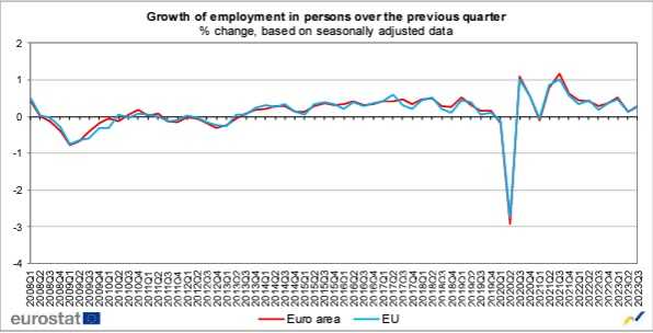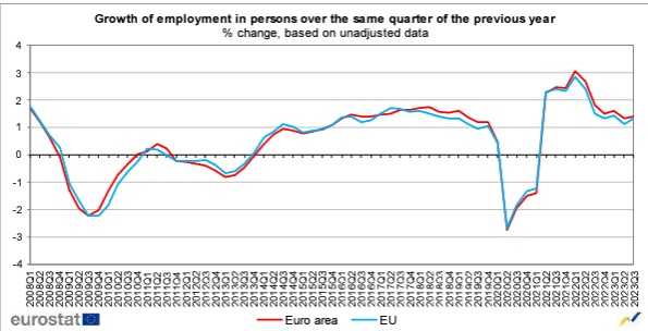 Ⅱ.ユーロ圏およびEUの雇用の伸び率