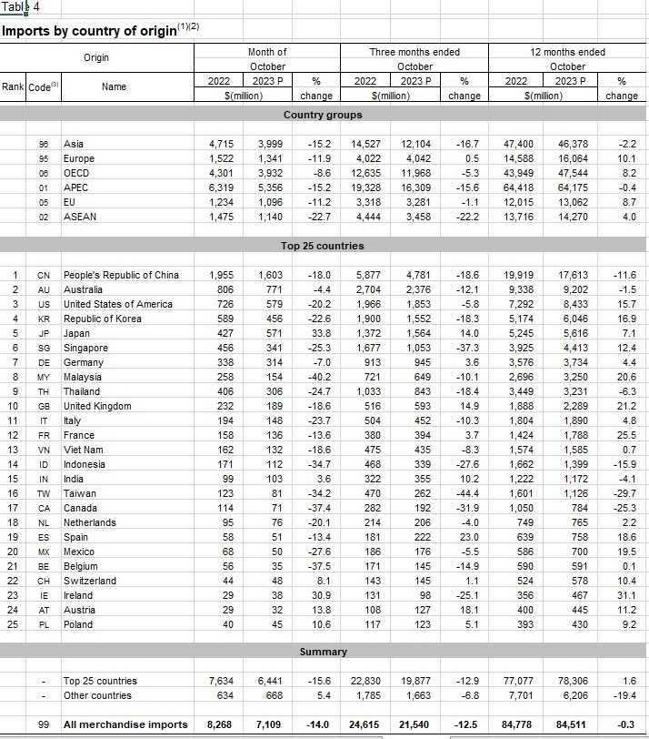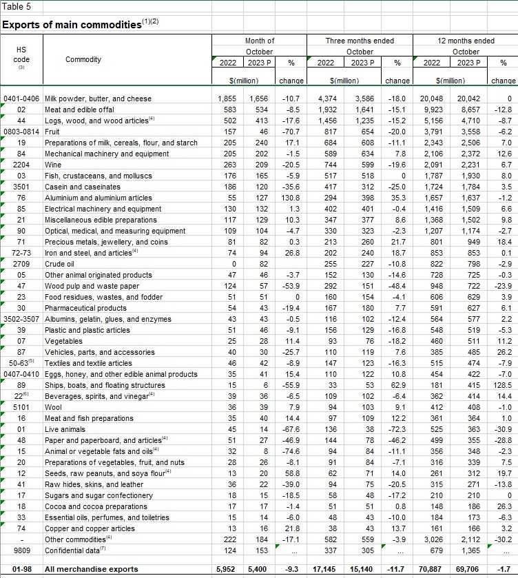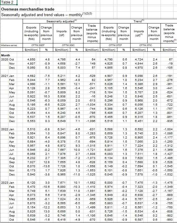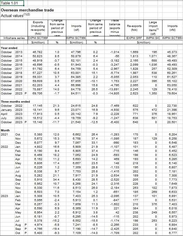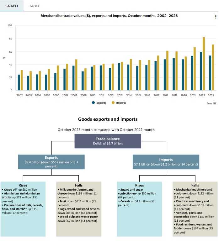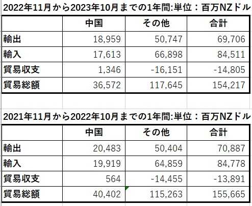 NewZealandの2024年10月の貿易収支 Nov 25, 2024