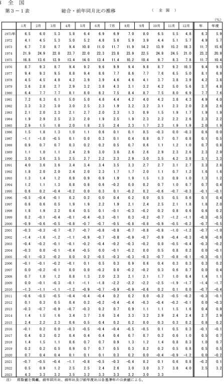 (3)総合指数(但し除く生鮮食品、エネルギー)