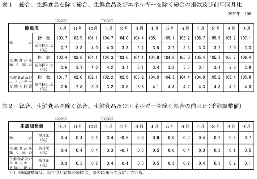 生鮮食品とエネルギーを除いた総合指数は4.0%