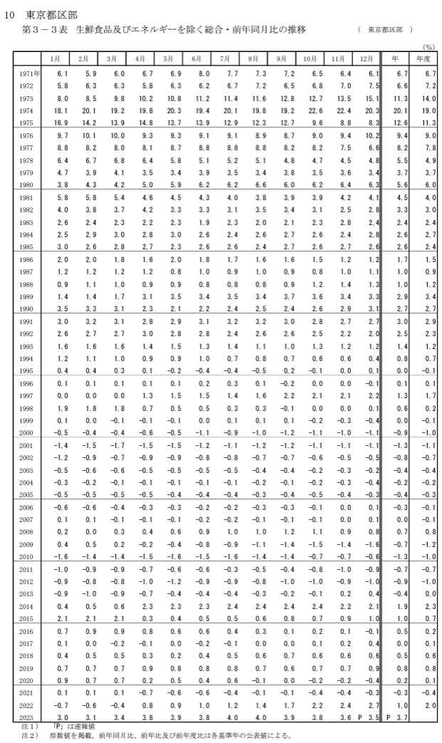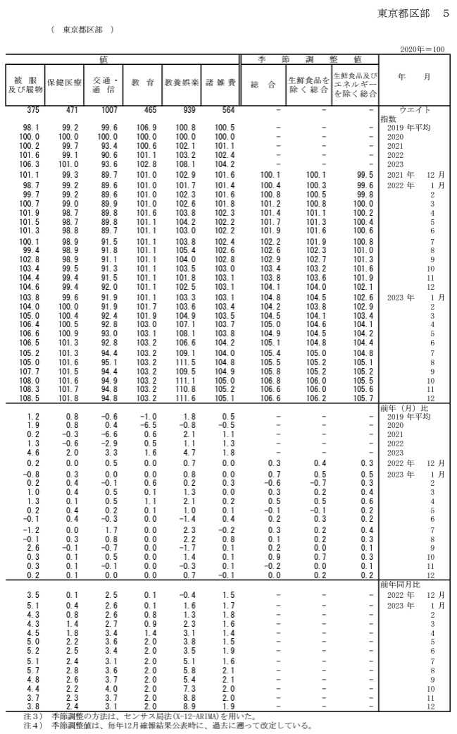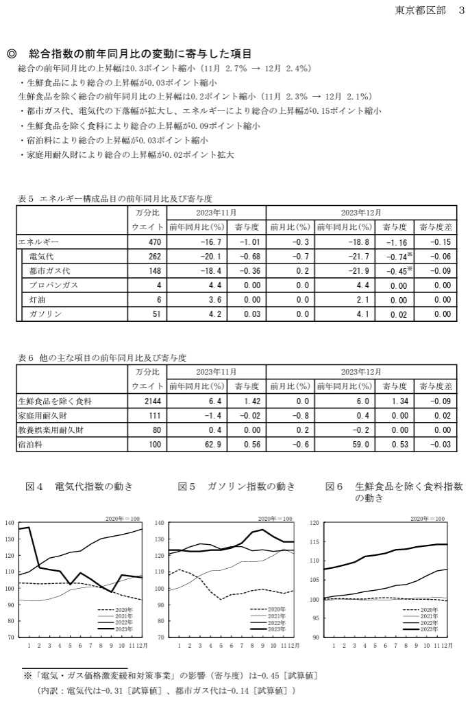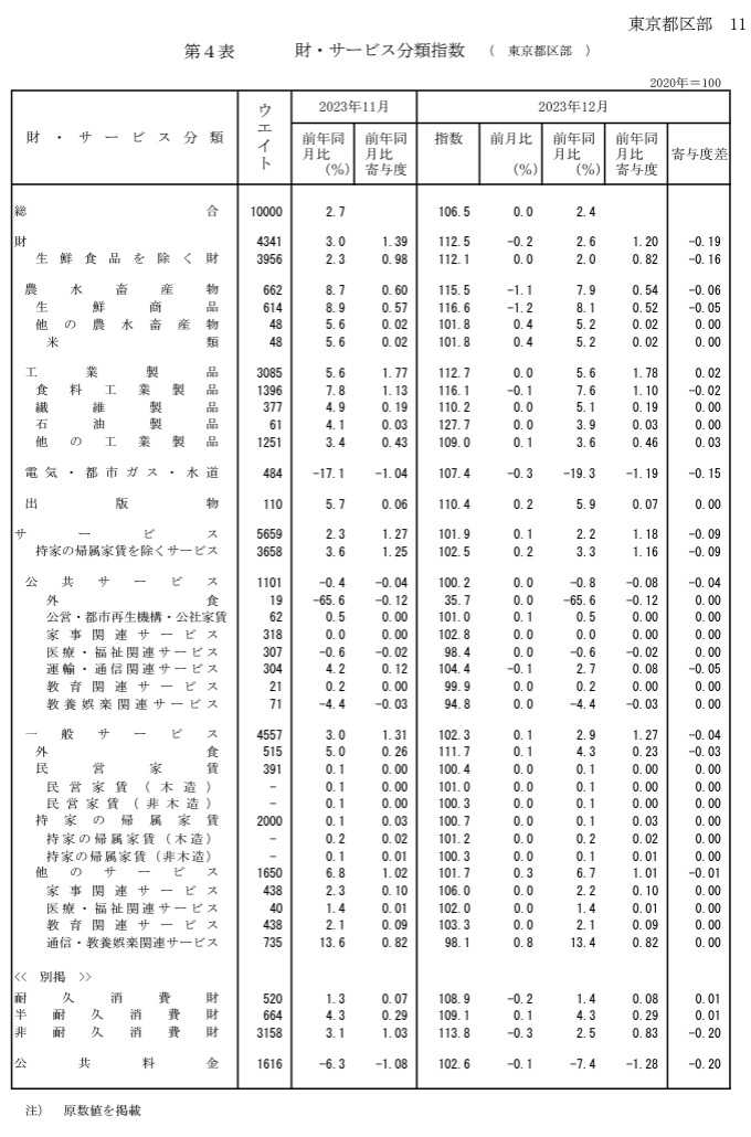 ​東京都区部の生鮮食品を除く総合指数は23年平均