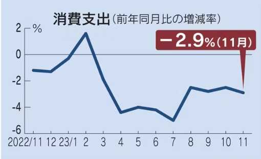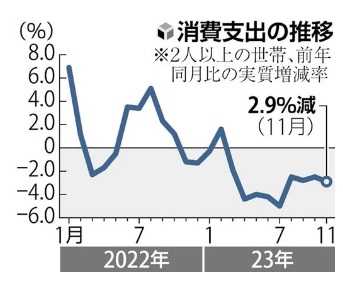 物価変動の影響を除いた実質で前年同月比2.9%減