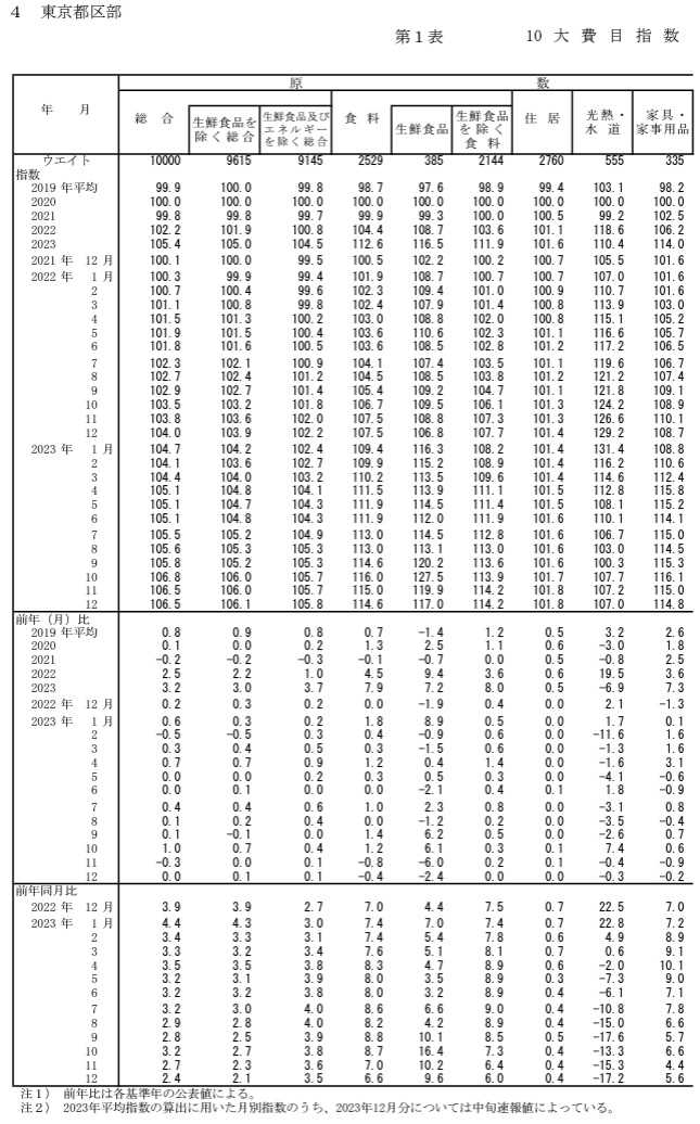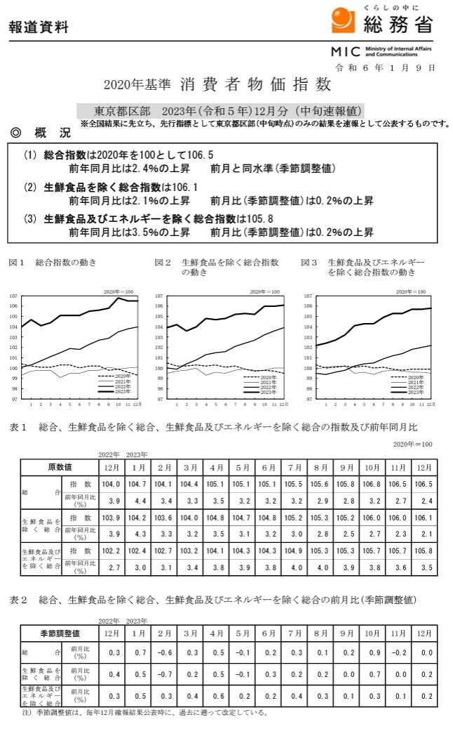日本のCPIの全国2023/12は2024/01/19 8:30