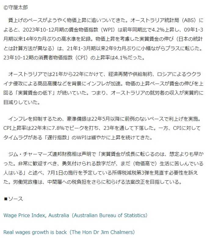 ​​​ ​Ⅰ.豪州2024年Q1の賃金指数​WPIは