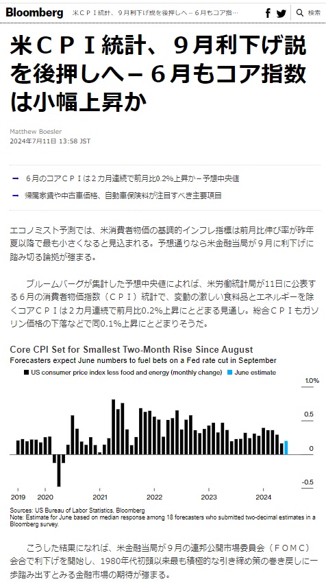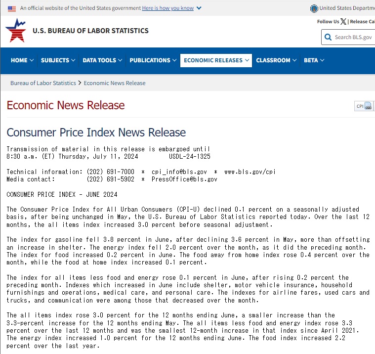 Ⅱ.米国のCPI2024年June(11th)