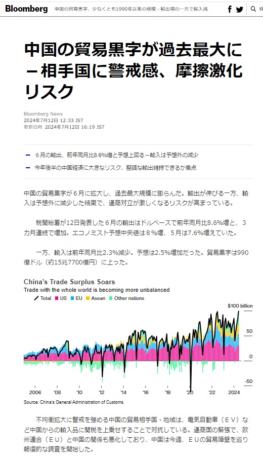 中国の最新版の貿易収支(元表示)の2024… Nov 7, 2024