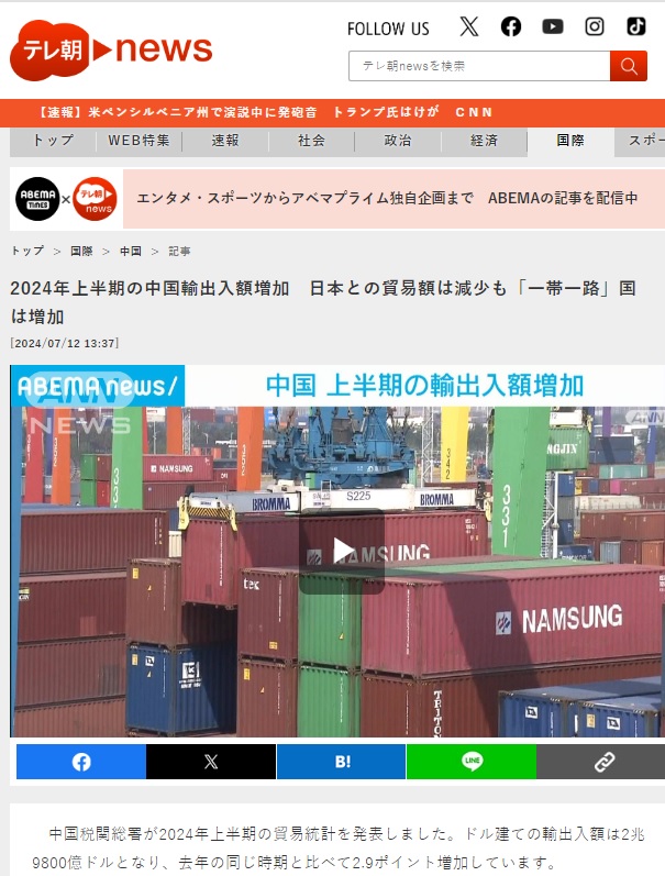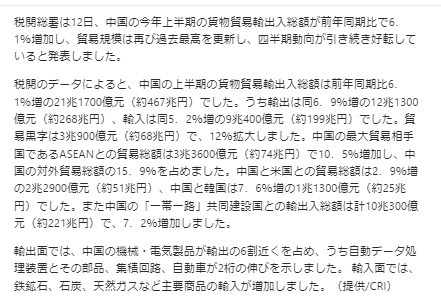 Ⅰ.中国の2024年8月貿易統計 総括 貿易… Sep 13, 2024