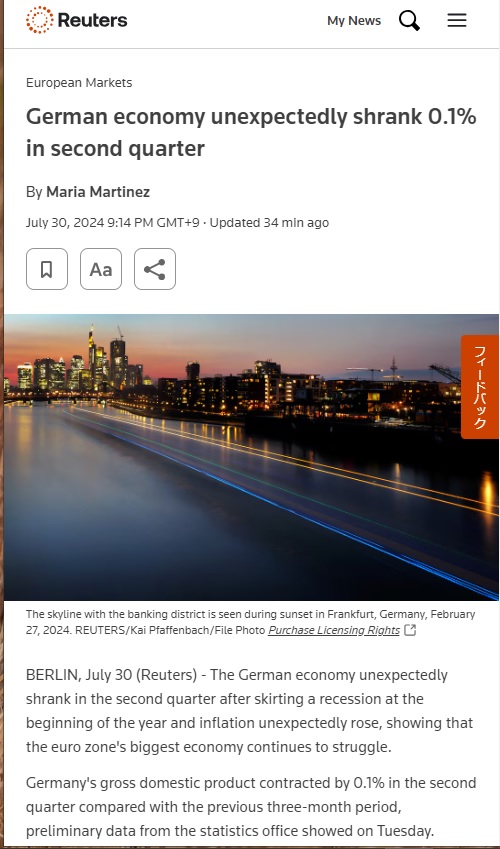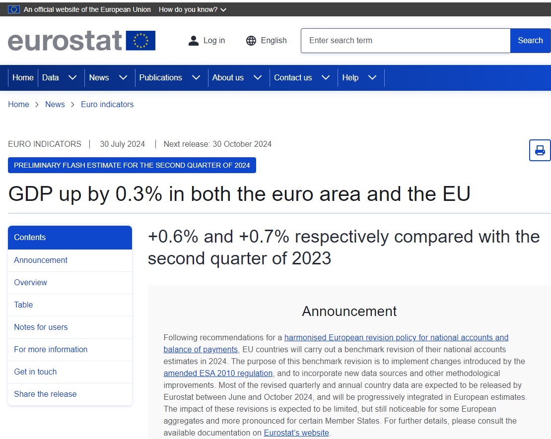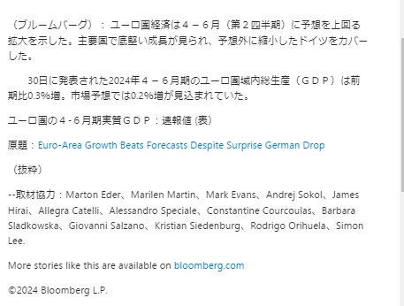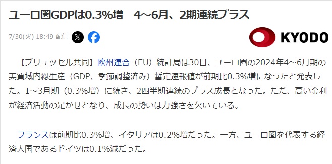Ⅰ.ユーロの2024年Q2実質GDP
