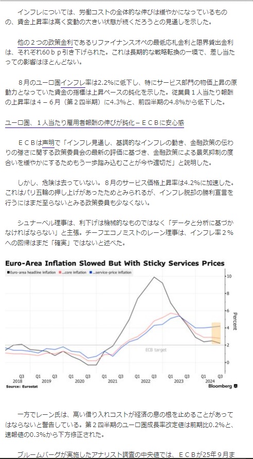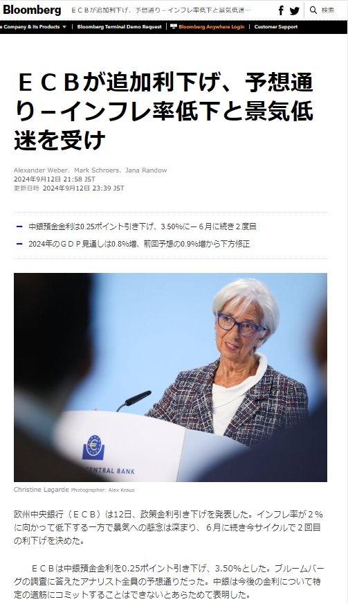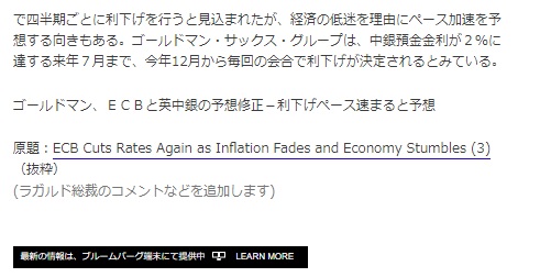 2.Bloomberg~ECBの追加利下げ、3.50%に。