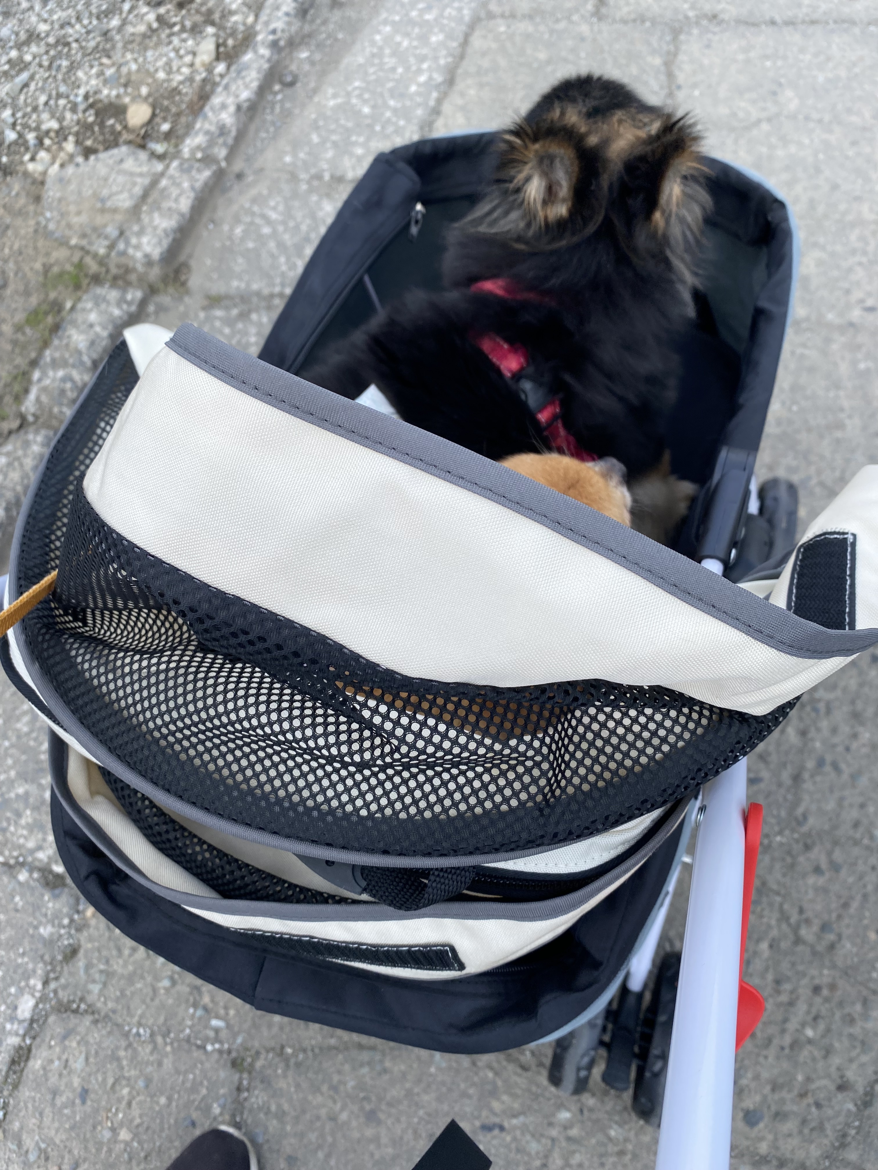 そろそろ足もよくなってきたし涼しいときはカートで散歩しよう今日は友達トリマーさん若くして心臓病で亡くなったトリマーさんの月命日だご冥福をお祈りします