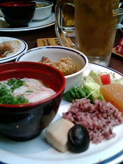 久しぶりに ランチ 行って来ました。野菜主体のバイキング最近は、こういうお店が多いですね(*∩_∩*)お客様の平均年齢は・・・・55歳くらいかな?という雰囲気の中 昼間っからおビールを飲んでしまいましたw これは、お代わりのお皿・・・一枚目は、食べるのに夢中で 撮るのを忘れていました゚(゚ノ∀`゚)゚。アヒャヒャ ヘルシーで おいしかったです(*∩_∩*)