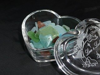 夏に取ってきたシーガラスを、ジュエリーボックスへ入れていたらはっけ~~~ん ほら・・・真ん中のあたりに 水色のハート形をしたシーガラスが・・・なにか いいことが起こりそうな予感シーガラスとは、海岸に落ちているガラスの破片荒波にもまれ、何日も いや、何年もかかって 角がまぁるくなったガラス茶色は・・・ビール瓶だったのかなぁ緑は・・・きっと外国から旅してきたんだ などと思いが馳せ巡る乾いていたら すりガラス 水に濡れたら 透明をおびたガラスたかが 海に落ちているガラスだけど、表情があり物語が作れそうで 夢、膨らみますよねこのジュエリーボックスは、お友達の工房さんに作っていただいたもので気分によって、金平糖をいれてみたり ピアスをいれてみたり、、、絵柄は、私がデザインしたものでマイネーム入りです(。・・。)ポッ♪クリスマスの演出にも使おうと思っていますが、何を入れようかしら。。。コレ 作るとき、お友達のプレゼントも作ってもらいました記念に画像を残していたので ご披露しますね 神戸のザッハトルテ 1904のザッハトルテチョコレートとオレンジが合うのよね~~~