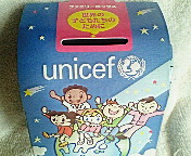 2,3日前からうちのテレビの上にユニセフの募金箱がのっています。長男がユニセフについて調べ物学習をしているとき、ホームページから資料請求をしてもらったものです。なぜかユニセフに興味のある長男。これまでもコンビニの募金箱におつりをいれたり(お小遣いでお菓子を買った残りですから5円とか10円ですけど)学校の募金週間に家族みんなからすこしずつ集めて持っていったり。 結構かわいい、募金箱なのでついつい入れたくなってしまいます。目立つところにあるせいか入れやすいし、わずか3日で結構重くなりました。