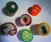 それぞれの味のフルーツ柄の飴になってるんですよ。