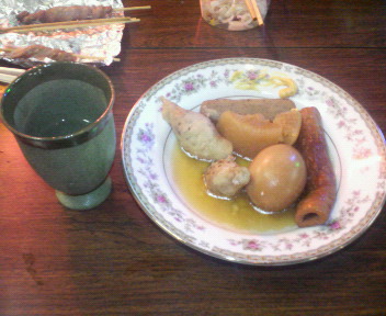 ここのおでんと串焼きに持参した焼酎で、美味しくいただきました。