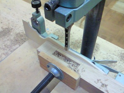 木工教室に通い始めてまもなく丸4年。現在、レトロ(風)な学校机を製作中。相変わらず作業の遅さでは群を抜いているアタシ(´ε`;)ゞさすがに先生も見かねて「角ノミ盤」の使用を進めてくれた。こいつ、仕事の早いこと!!!アタシが3ヶ月くらいかけても間に合いそうにないホゾ加工を、1時間やそこらで片付けてしまた( ̄□ ̄!)スゲ…おかげ様で凹ホゾは完了~!でも、結局凸ホゾ加工からは逃れられんわけで・・・・・orz