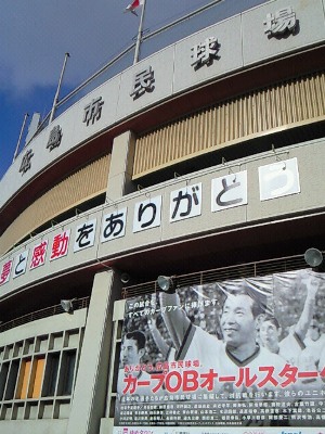昨日は雪の降る中、最後の市民球場へ、カープうどん食べに行ってきた~!・・・・・・・、じゃなかった・・・・・、『カープOBオールスターゲーム』に行ってきた~!いや、久しぶりに足がジンジンするほど寒かったっす!!ホームラン競争では、誰一人ホームランを打てなかったり試合でヒットを打っても1塁でアウトになったり、と若干のグダグダ感はあったけど(笑)、観に行ってよかった♪おまけに「慶彦さ~ん がんばってぇ!」も聞けたしwwそして最後のカープうどんは、アタシの「うどん人生」の中で一番美味いんじゃないかと思えるほど最高の味じゃった(*T0T*)ありがとう、市民球場!ありがとう、カープうどん!!我が「カープうどん人生」に悔いなし!!!
