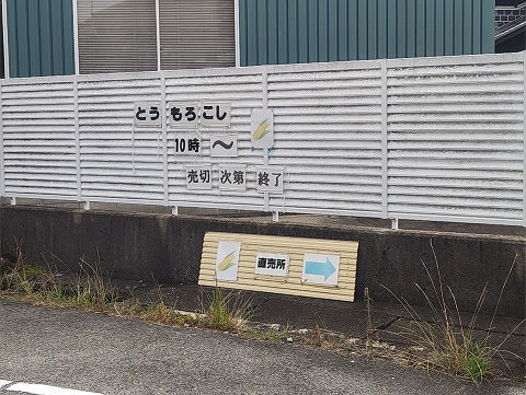 _火曜朝のRSKラジオ「天神ワイド朝」で、坂さんが紹介していた牛窓の髙田農園のとうもろこしを求めて、牛窓にある直売所へ。 鹿忍の交差点に、案内が出ていたので、迷わず到着。 お目当ての桃太郎コーンはなかったが、「次郎くん」と白い「うしまどんな」を購入。 生で試食させてもらうと、甘い。8月いっぱいだそうだ。