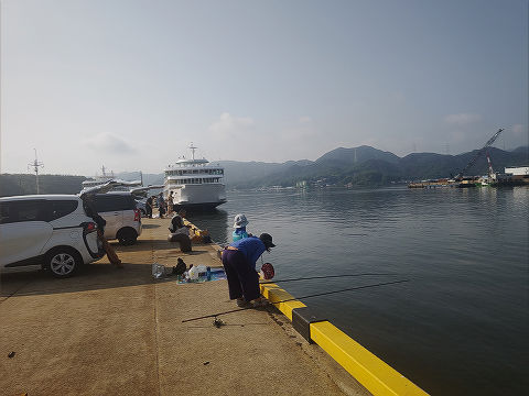 _孫のリクエストで魚釣りへ。 途中、釣具店で、サビキ用のオキアミと青虫を購入。 一番お手軽な車を横付けできる新岡山港の岸壁へ。 空も海もとてものどか。岸壁には、釣り人のバックドアを上げた軽トラが並んでいる。 魚釣りは30年ぶり。釣り竿も糸も仕掛けも使えるかどうかは怪しい。 一応、サビキでママカリ狙いだが、水面には小魚の姿は見えるが、餌さえ、とられない。 周りの誰も釣れないようで、他の釣り人も、早々に撤収している。 人生初の海釣りなので、せめて、1匹でも魚の顔を拝ましてあげたかったけど、2時間ほど粘ったが、撤退。腕以前に潮が悪いのだろう。 みやま公園で魚買って帰った。