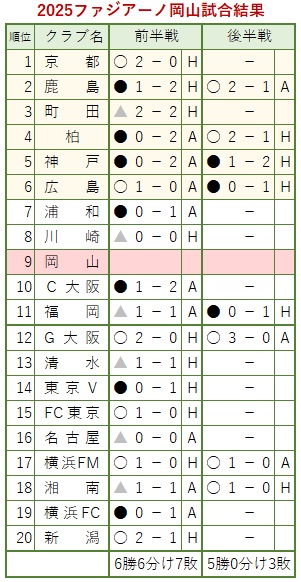 【J1第39節】 ◇日時 2025年8月23日(土)19:03 ◇場所 JFE晴の国スタジアム ◇観衆 14,256人 ◇天候 曇 31.6℃ 55% 0-0 ファジアーノ岡山 1 0 湘南ベルマーレ 1-0 ◇得点 【岡山】佐藤(65分) 【湘南】 ◆公式記録◆🆚#湘南ベルマーレGK #スベンドブローダーセンDF #阿部海大 #田上大地 #鈴木喜丈MF #松本昌也 #宮本英治 #藤田息吹 #佐藤龍之介FW #岩渕弘人 #一美和成 #江坂任SUB #川浪吾郎 #工藤孝太 #加藤聖 #柳貴博 #田部井涼 #神谷優太 #木村太哉 #ウェリックポポ #ルカオ pic.twitter.com/nfe8oHjYti— ファジアーノ岡山スタッフ公式 (@fagiano_koho) August 23, 2025 立田選手の負傷離脱により、DFラインは、昨年のプレーオフ決勝メンバーの鈴木、田上、阿部選手。 前半キックオフ。 ロングスローは、いつもされる側だったが、岩渕選手のロングスローで攻撃のオプションが加わる。 前半終了🏆明治安田J1リーグ 第27節#ファジアーノ岡山 0-0 #湘南ベルマーレ後半も応援お願いします!#DAZN で観戦↓📱 https://t.co/5NYeizGM4J pic.twitter.com/Lzb1y0MUxo— ファジアーノ岡山スタッフ公式 (@fagiano_koho) August 23, 2025 一進一退の攻防。あっという間の45分。 左サイドは、鈴木、佐藤、江坂選手が揃い、レベルが違う。中でも、佐藤選手はキレキレ。 守備面では、久々の先発出場の阿部選手がよく守った。 ハーフタイムは、BMXパフォーマンスショー。自転車が空を舞った。 後半キックオフ 日本代表18歳・佐藤龍之介が今シーズン5ゴール目🔥🎦 ゴール動画 🏆 明治安田J1リーグ 第27節🆚 岡山vs湘南🔢 1-0⌚️ 65分⚽️ 佐藤 龍之介(岡山)#Jリーグ pic.twitter.com/rNA51FLQ1D— Jリーグ(日本プロサッカーリーグ) (@J_League) August 23, 2025 うれしいうれしい先制点。 しかし、このゴール前の落ち着きはなんだろう?恐ろしい18歳。 アディショナルタイムは7分。 78分から投入された湘南のルイス・フェリッピ選手は、アウェイでは同点ゴールを決めた選手。危険な香りがする。93分には、あわやというコントロールショット。 アディショナルタイムも残り2分ほどになったところで、ゴール正面の絶好の位置でFKを与えてしまった。 キッカーは、ルイス・フェリッピ選手。きれいな弾道を描いたキックは、クロスバー直撃で、命拾い。心臓が止まるかと思った。 先週木曜日は職場のトイレ掃除当番で、心をこめてトイレ掃除したのが効いたかも?? 死闘、紙一重の戦いだった。試合終了🏆明治安田J1リーグ 第27節#ファジアーノ岡山 1-0 #湘南ベルマーレ65分 佐藤龍之介各地からチームを応援していただき、ありがとうございました。 pic.twitter.com/aE6Fzt153N— ファジアーノ岡山スタッフ公式 (@fagiano_koho) August 23, 2025 ボール保持率50%という珍しいものを見てしまった。 今日のヒーローは、文句なく、攻守にわたって、違いを見せた佐藤選手。 アウェイでもゴールを決めた佐藤選手が湘南から今季勝ち点4を獲得してくれた。 毎年のように降格の危機を驚異的な粘りで、J1を6年間キープし続けている湘南。 倉敷市出身でU20日本代表にも選出されたアタッカーの湘南の石井久継選手が、ファジアーノサポーターにGATE10からメインスタンドまで挨拶。元所属選手でなくて挨拶に回ったのは、他には乾選手くらいかな。 気が遠くなるほど長かったJ2時代、フラッとやって来て無双したFC東京、柏、C大阪などはおいといて、湘南や鳥栖には、全然、歯がたたないなと思っていてだけに、この勝利は、しみじみとうれしい。 今節は、下位チームが苦しんでおり、ファジアーノは、J1残留に向けて大きな1勝だった。これまでは、こういうのは、いつもお付き合いしていた。 09 C大阪▲ 10 岡山 ○ 11 G大阪○ 12 福岡 ▲ 13 清水 ▲ 14 東京V● 15 F東京- 16 名古 ● 17 湘南 ● 18 横FM ▲ 19 横FC ● 20 新潟 ● J1での初の3連勝で9位浮上。夢のようだ。 まだ、残り11試合あるから、何が起こるかわからないが、J1に残留してもおかしくない勝ち点(39)になった。 ある程度、J1残留の目処が立ってくると、来季の補強もやりやすくなってくるだろう。 また、署名活動では、「どうせすぐにJ2に落ちる」といった意見もあるが、こういう逆風にさらされなくてすむ。 今季の日程は終盤にビジターゲームが多いのが不安だった。 アウェイ川崎戦とかホーム最終戦の浦和戦とか、背水の陣で挑まないといけないと思っていた。 とはいえ、われわれは、何も手にしてないので、何としても、次節の京都戦で勝利して、夏休みの宿題として、残留を揺るぎないものにしたい。 今季15試合目のホームゲームの入場者数14,256人。 柏戦に比べて、1,100人あまり下回りましたが、これは、ビジター席が完売にならなかっとことに加え、コロナ等による体調不良、うらじゃへの参加などの要因が重なったのではないかと思う。 今季のリーグ戦の入場者総数は218,356人となり、過去最多だった2016年の210,364人(21試合)を上回った。にほんブログ村